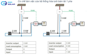 Điện mặt trời hoà lưới bảm tải là nó sẽ ưu tiên sử dụng điện sản xuất từ mặt trời trước và chỉ sử dụng điện lưới khoảng 1-10% tuỳ cách cấu hình của người lắp đặt.