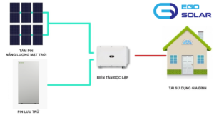 Bộ chuyển đổi điện ( Inverter ): Thường cục Inverter này sẽ đắt cục Inverter của hệ bám tải vì nó có thêm vài chức năng như là lưu trữ thêm,…
